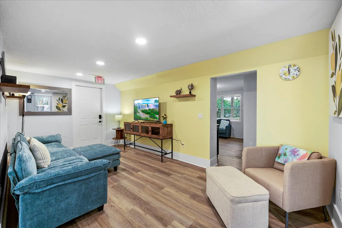 - Large screen TV in living room connected to the internet for any streaming you want to do on your vacation