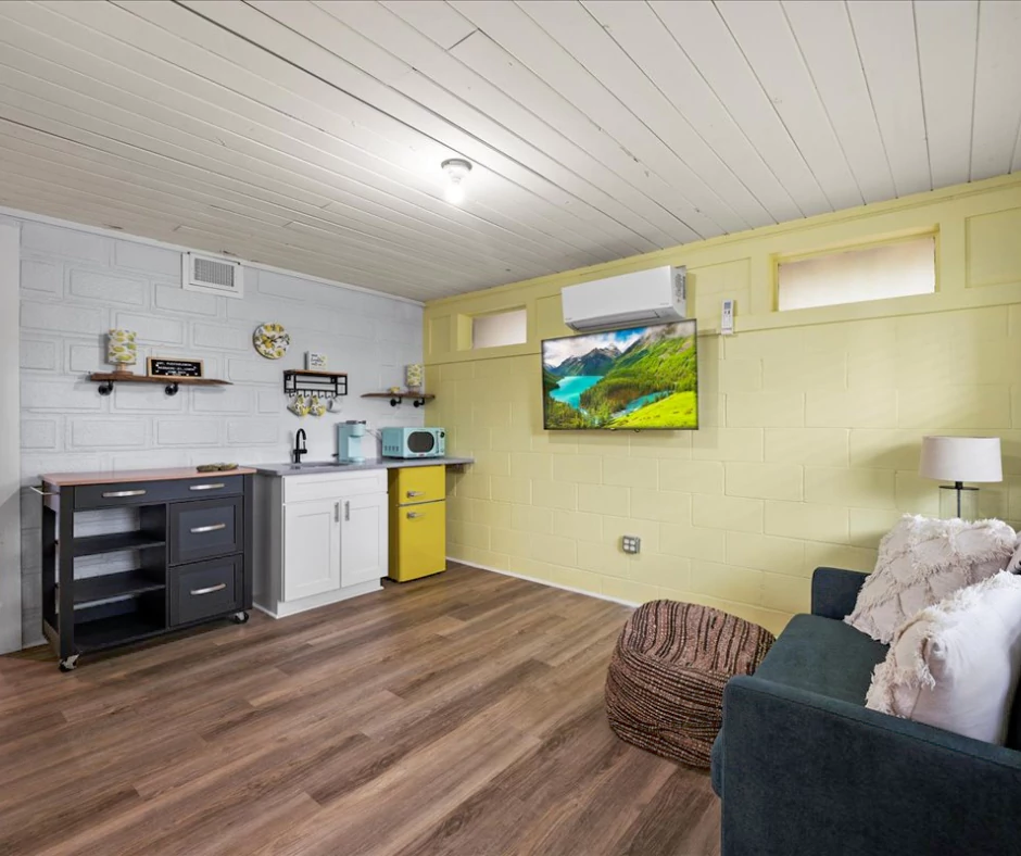 Inside the Casa Limón A, you’ll find a beautifully refurbished vintage home with a mix of heritage and modern conveniences. You’ll enjoy classic and crisp linens, soft towels, and a cute kitchenette perfect for simple meals at home, morning coffee and breakfast. Gather outdoors in the spacious park like yard (perfect for taking the dog out). Wake up to the scent of fresh coffee as you admire the peaceful neighborhood from the front room.