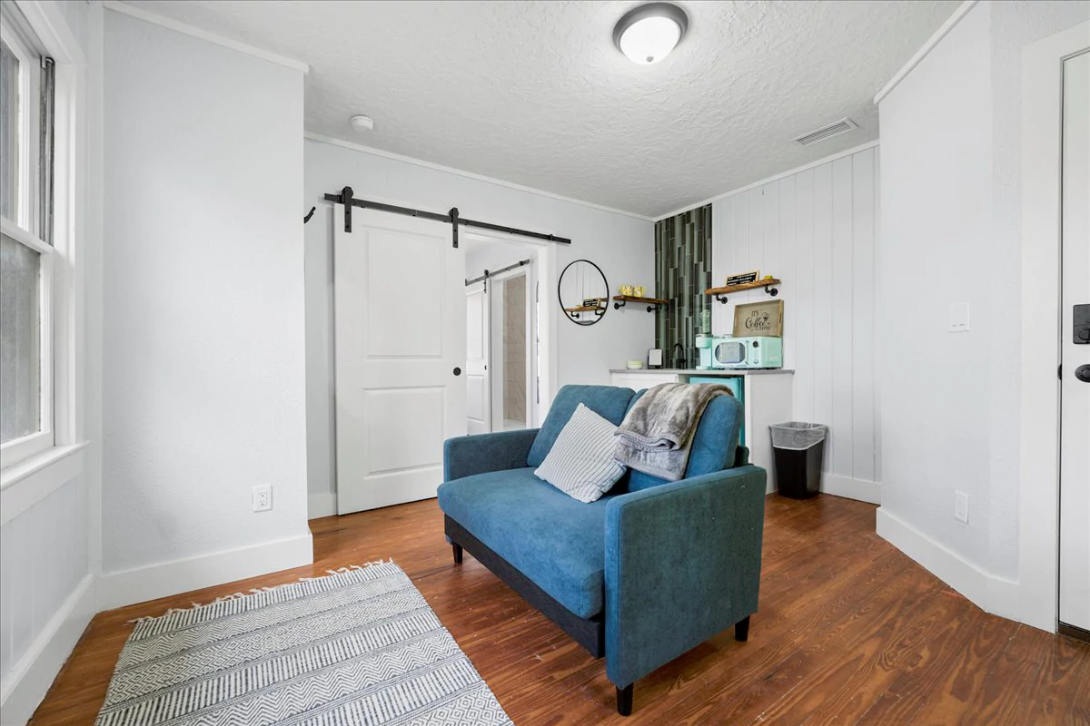 Inside the Casa Limón C, you’ll find a beautifully refurbished vintage home with a mix of heritage and modern conveniences. You’ll enjoy classic and crisp linens, soft towels, and a cute kitchenette perfect for simple meals at home, morning coffee and breakfast. Gather outdoors in the spacious park like yard (perfect for taking the dog out). Wake up to the scent of fresh coffee as you admire the peaceful neighborhood from the front room.